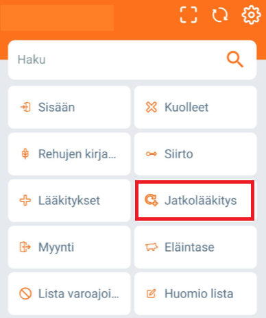 Avaa PigVision Mobile Growers ja siirry etusivun "Jatkolääkitys"-valikkoon.