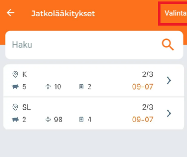 Jos sinulla on useita jatkolääkityksiä, voit valita tietyn sijainnin "Haku"-palkista. Tällöin luettelossa näkyvät vain valitun sijainnin jatkolääkitykset.