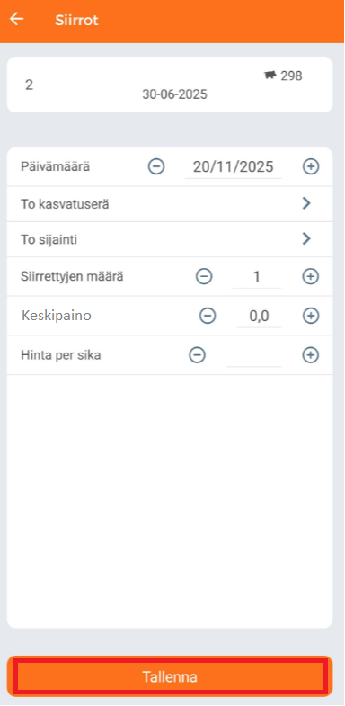 Valitse sijainti. Seuraavaksi valitset siirtopäivämäärän ja sijainnin, johon eläimesi siirretään. Lisäksi valitse sikojen lukumäärä ja paino.