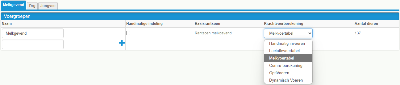 U kunt de berekeningsmethode aanpassen onder AgroVision Cows Voeding - Instellingen - Voergroep.