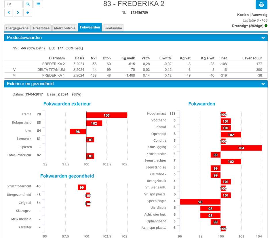 De koekaart is op te vragen van het diernummer dat u in de zoekbalk invult