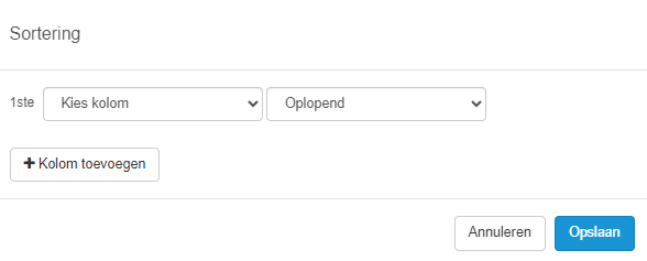 - Met de sorteringsknop is mogelijk een sortering toe te kennen in het rapport. Ter voorbeeld: