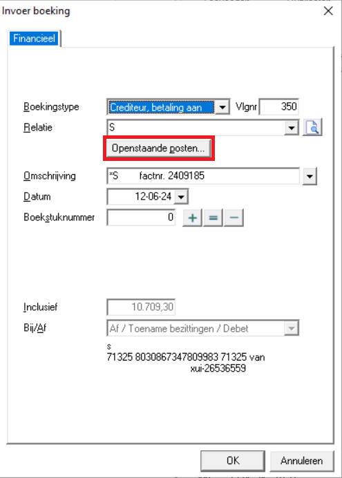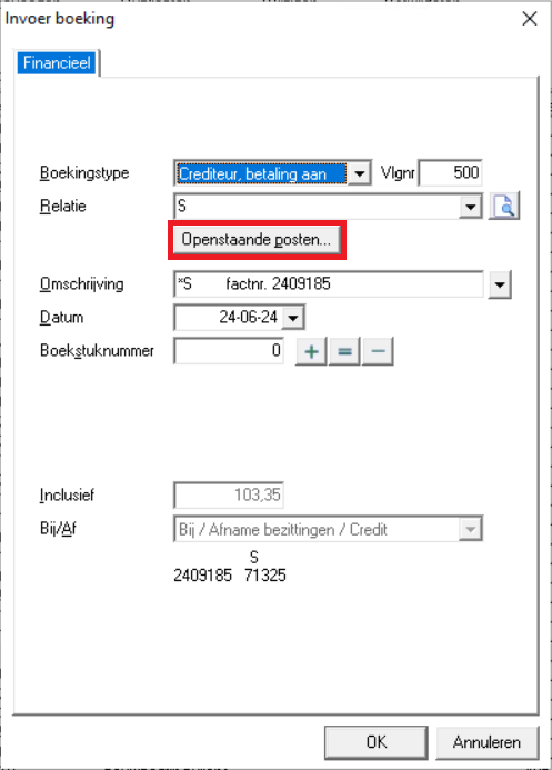 1. De factuur moet ingelezen zijn in het inkoopboek