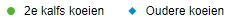Onder de grafiek staan de 2 groepen: oudere koeien en 2e kalfs koeien. Wanneer u alleen de oudere koeien in de grafiek wilt zien, kunt u klikken op de woord 2e kalfs koeien. Deze zullen dan inactief gemaakt worden waardoor alleen de oudere koeien in de grafiek worden weergegeven.