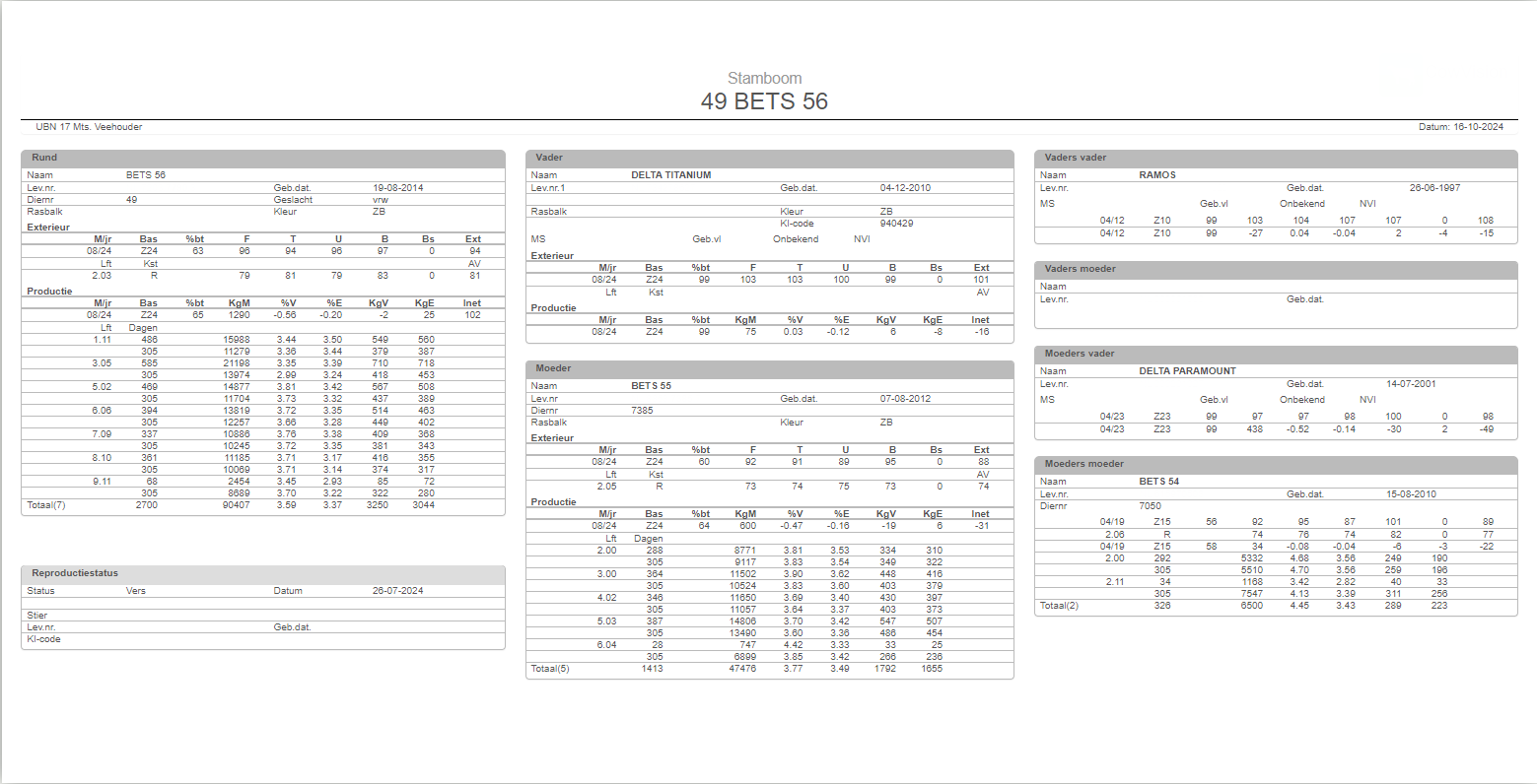 Bij Dieranalyse - Fokkerij - Stamboom 3 generaties zijn de melklijsten op te vragen van 3 generaties.