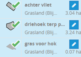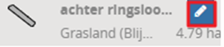 Door op het rood geselecteerde potloodje te klikken komt het volledige perceel naar voren. U kunt dan de perceelsgegevens aanpassen. Bijv. de naam, het gewas, teeltkenmerk or oppervlakte.