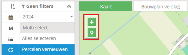 Links bovenin de kaart staan 2 knoppen weergegeven, daarmee is het mogelijk om een nieuw perceel toe te voegen.