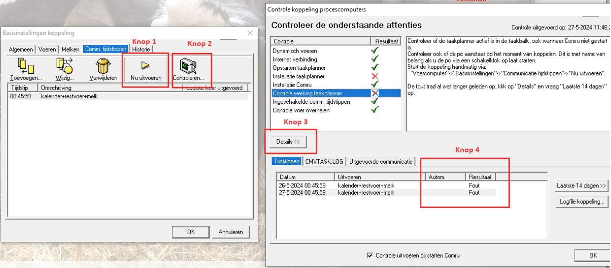 - Indien er een foutmelding komt, wees alert uit welk programma deze melding komt. Indien de robot of melkstal de verbinding kwijt is met de computer, neem contact op met je dealer!