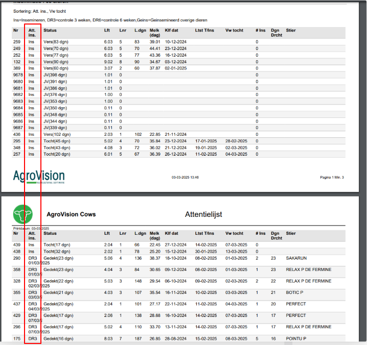 Het grote voordeel van de kolom attentie inseminatie is dat er nu aangegeven wordt waarom het dier op de attentielijst staat:
