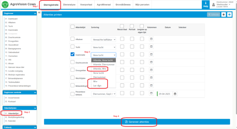 Kies vervolgens de menuoptie 01. Attentielijst.
