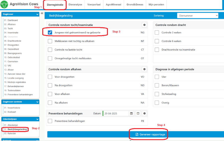3.     Selecteer ‘Jongvee niet geïnsemineerd na geboorte’.