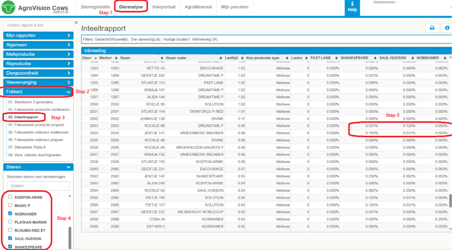 In Dieranalyse is het Inteeltrapport toegevoegd. In dit rapport kunt u zien hoe verwant de geselecteerde stieren zijn aan uw koeien. Dit helpt u bij het maken van een verantwoorde stierkeuze.
