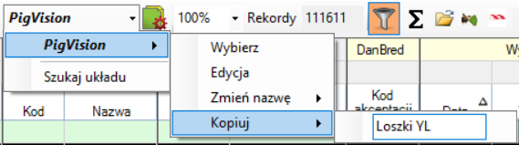 Po wpisaniu YL program pokaże wszystkie zwierzęta z wpisaną rasą YL. Aby zapisać ten wybór klikamy ikonę Ustawienia układu