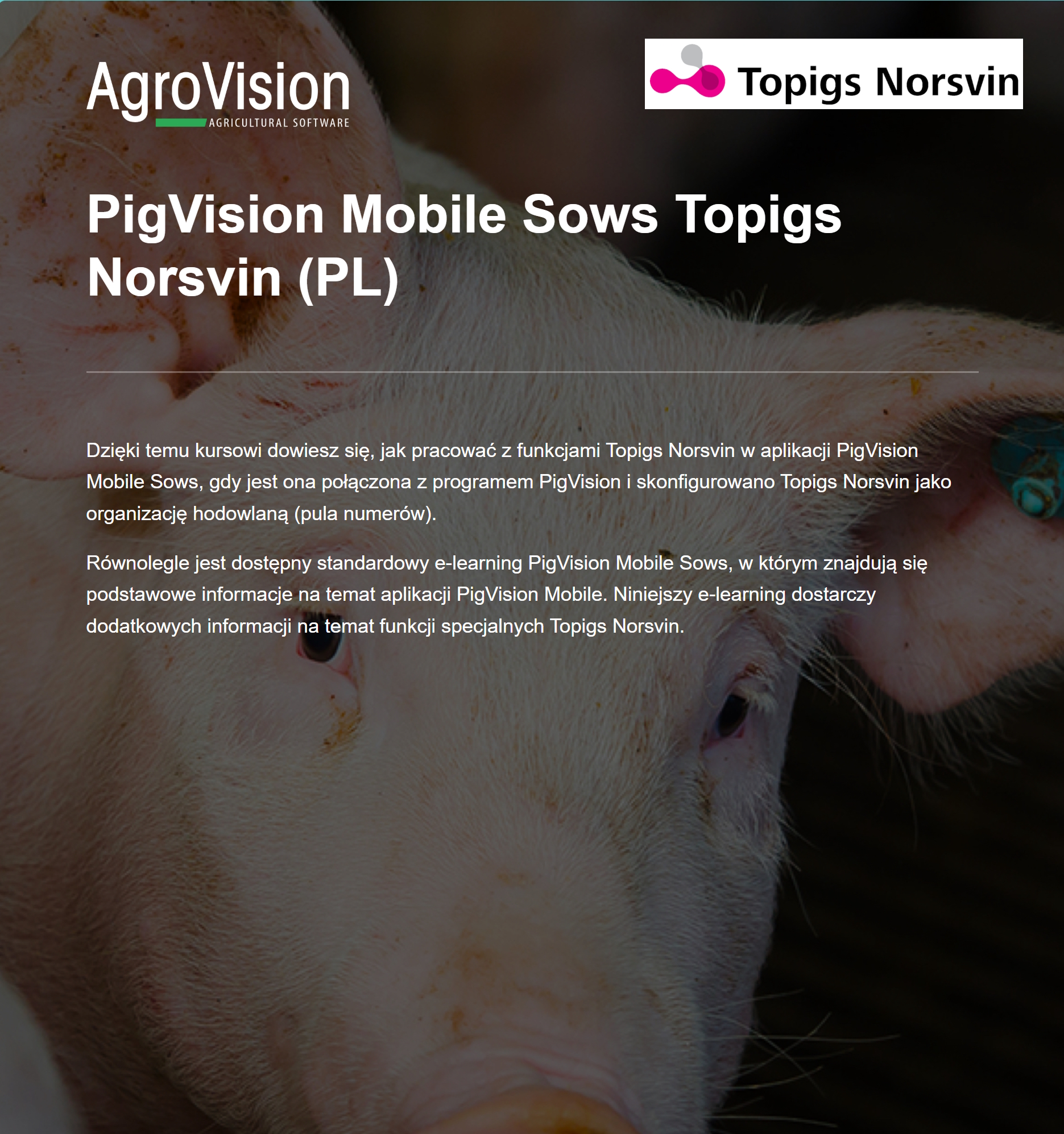 Kliknięcie na obrazek przekieruje do kursu e-learningowego, dotyczącego funkcji Topigs Norsvin w PigVision Mobile.