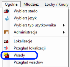 Przechodzimy do punktu menu Ogólne – Wsady, który jest teraz dostępny.
