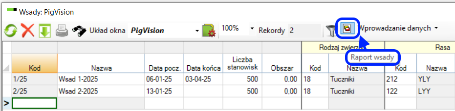 Prowadząc rejestracje w oparciu o wsady (w systemie „całe pomieszczenie pełne, całe pomieszczenie puste”), można tworzyć raporty dotyczące poszczególnych partii zwierząt.