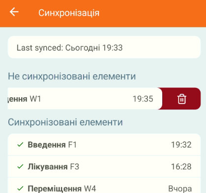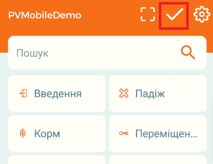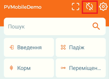 Щоб синхронізувати дані між PigVision та PVMG, натисніть на значок галочки посередині вгорі. Якщо є несинхронізовані дані, значок буде у вигляді двох стрілок, перекреслених лінією (див. останнє зображення):